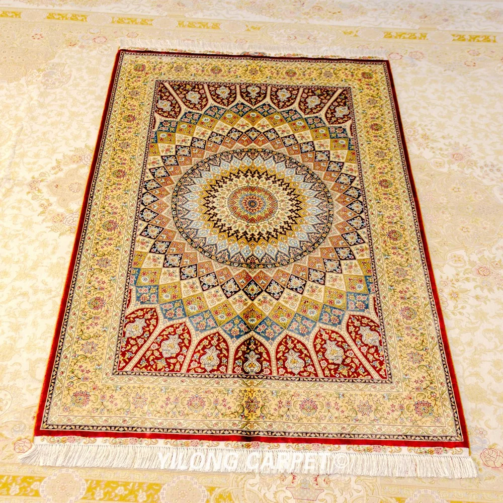 Special Offer Yilong 4 'X 6' Rode Zijde Op Zijde Tapijt Top Klasse Perzische Handgeknoopte Kashmir Zijden Kleed (ZQG397) Discount 8% Today!